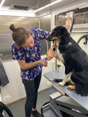 Alleviate the time and stress of getting your dog(s) to the grooming salon with our at-home grooming service! Saves time, gas $ and stress on you and your fur baby!
