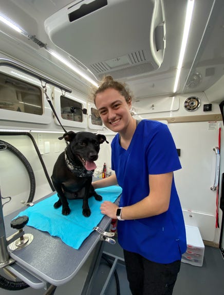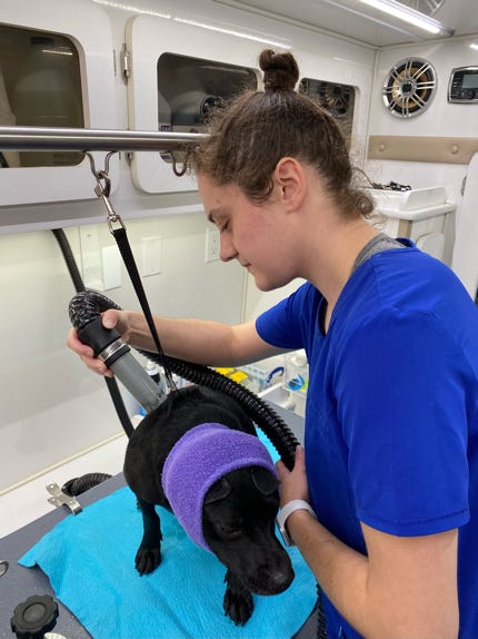 Our first rockstar to be bathed on the van, Brody thoroughly enjoyed his bath and special cuddles.